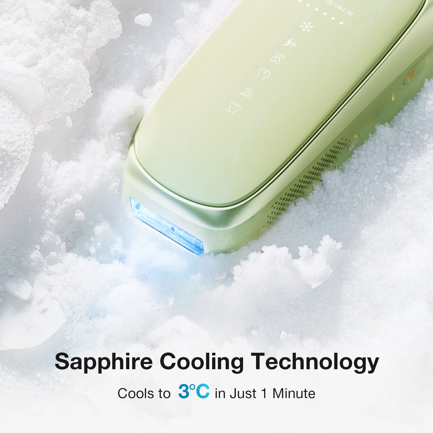 Experience comfortable and permanent hair removal with the JOVS Scroll, an All-in-One IPL device. It features an innovative Sapphire Ice-Cooling Design that ensures the skin contact area remains cool, helping to prevent heat discomfort and delivering a virtually pain-free session. The device's 10-minute full-body capability and sleek, lightweight design make professional-quality hair removal simple and fast, leading to noticeably smoother skin. It includes 4 modes for full-body readiness.